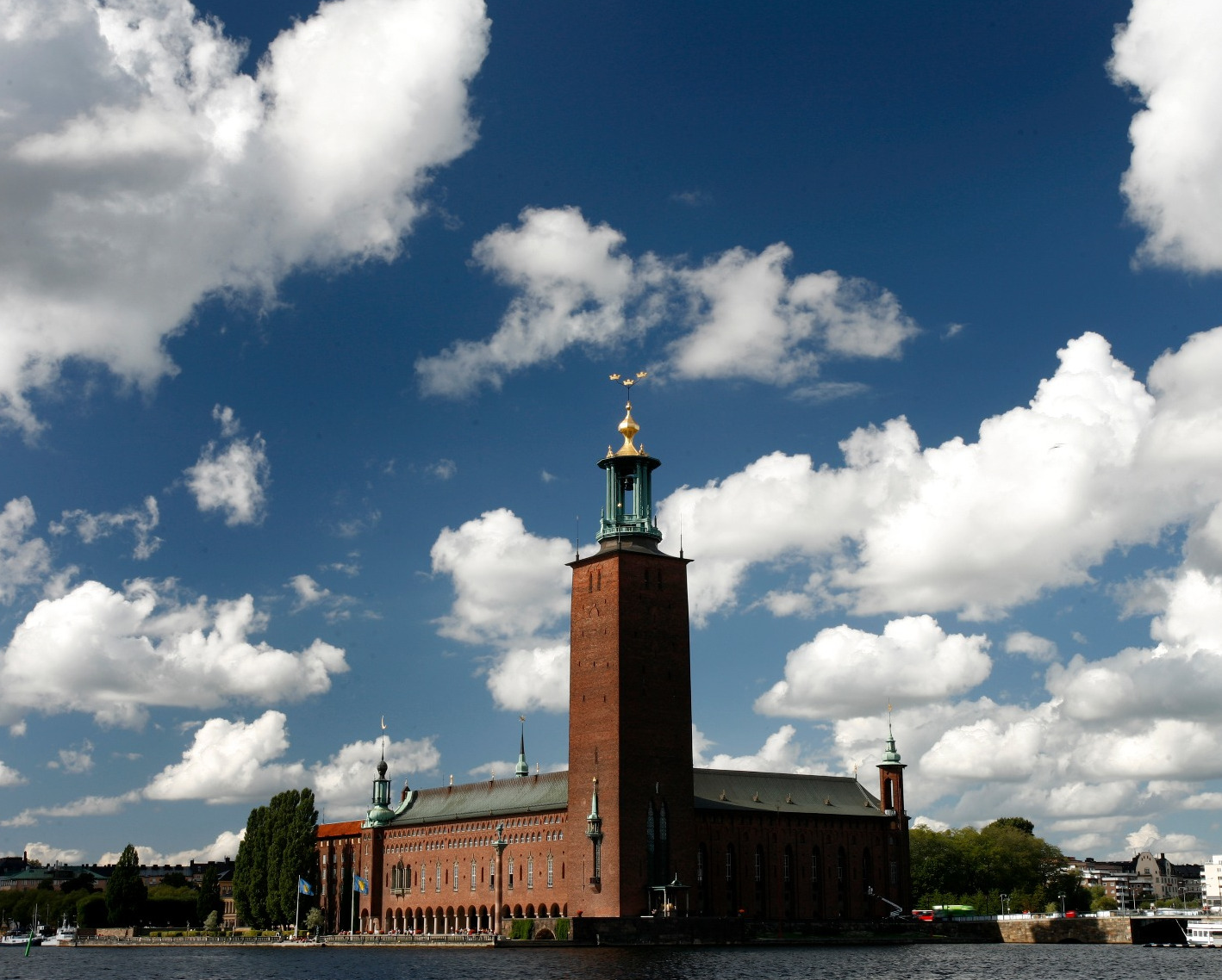 Mot Mälaren vänder Stadshuset en omsorgsfullt utformad liten park, som välkomnar alla stockholmare och de besökare som kommer vattenvägen.